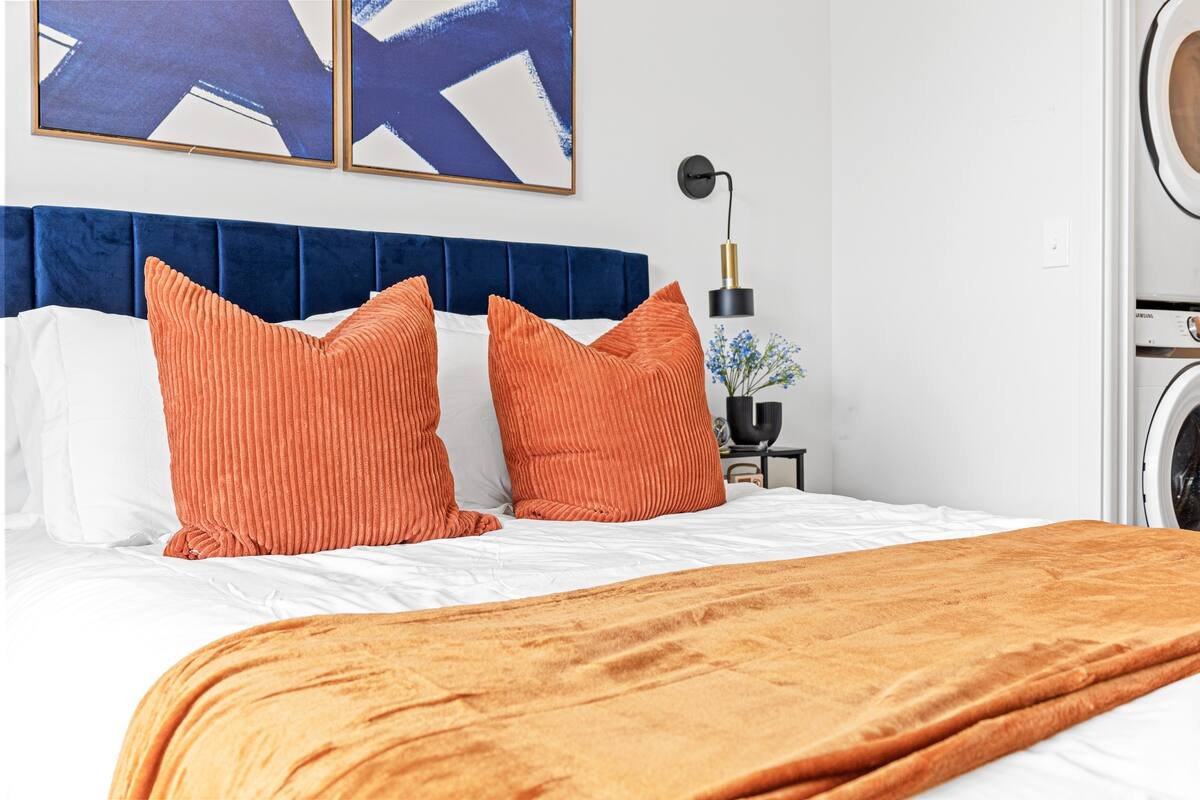✔️ Cozy Bedroom: Retreat to our cozy bedroom, fitted with high-end linens for a restful sleep