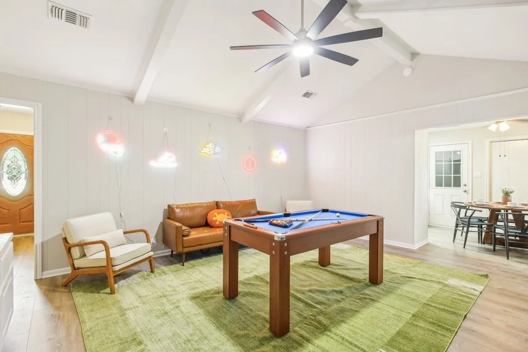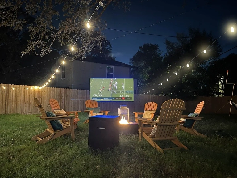 Outside, relax by the fire pit in the backyard and soak up the starlit Texas skies.