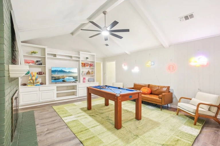 Take advantage of shared amenities such as the fully stocked kitchen, karaoke room, and game room, or unwind in the backyard by the fire pit under the stars.