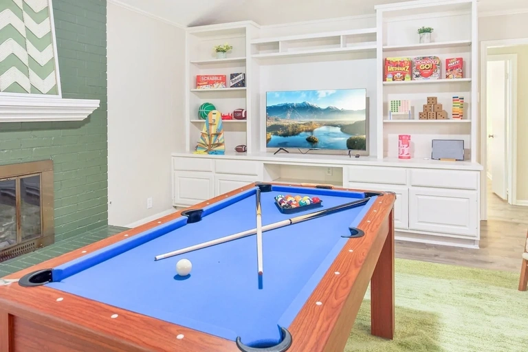 Minutes from Texas A&M and Kyle Field, this spacious 5-bedroom, 3-baths home is perfect for up to 14 guests. Boasts a karaoke room and a game room for endless fun. The backyard features a fire pit for cozy evenings under the stars.